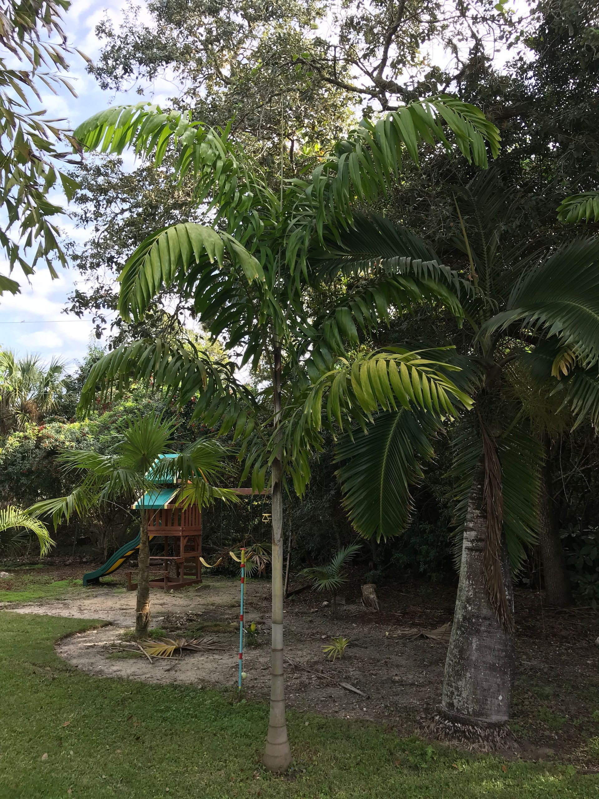 Benefits: This is probably the most attractive hybrid palm in the world. Its droopy leaflets create a beautiful, tropical look that appeals to everybody. It is a very fast grower and has generally low fertilizer and water needs. Seeds off a Foxy Lady Hybrid are typically sterile so you don’t have a bunch of seedlings popping up underneath the parent tree. It is a self-cleaning palm as well.