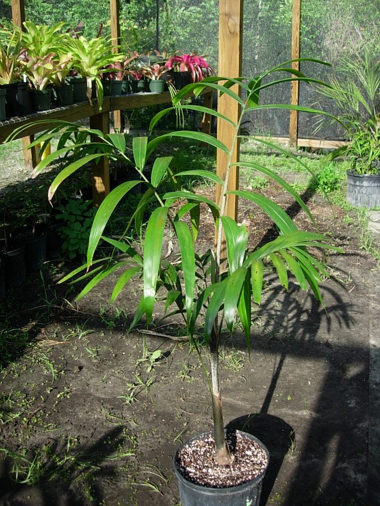 Identification: Identifying Foxy Lady hybrids from seedlings is probably the most hotly-contested and overly-discussed subject in the entire rare palm collector world! Many have bought seedlings labeled as hybrids, only to find out that they’re not and they had got dooped out of their money. The obvious identifying characteristic is if a seedling comes up variegated (variegated pure Foxtail seedings probably come up about one in one million). Besides that, you will know you have a hybrid if the tree has been manually cross pollenated (properly), or if the eophyll or first few leaves are very thin, droopy, and delicate. The general rule of thumb is “if you are on-the-fence as to whether it’s a hybrid or not… its not.”